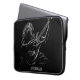 Guitarrista da silhueta das cinzas sobre fundo preto.