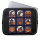 Esta ilustração vibrante e colorida apresenta uma coleção de designs do Halloween, centrados em abóboras. Há abóboras com rostos assustadores, abóboras com chapéus de bruxa, e abóboras cercadas por morcegos e estrelas. Outros elementos incluem fantasmas, crânios e padrões giratórios. O humor geral da imagem é festivo, assustador, e ligeiramente estranho, perfeito para as comemorações de Halloween.