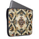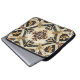 O produto apresenta um mosaico ou design de azulejo elegante e muito detalhado, com uma composição simétrica e ornamental. O motivo central apresenta um padrão semelhante a uma estrela em tons vermelhos profundos e cremes, cercado por intrincados elementos de rolagem e formas florais estilizadas. A paleta colorida é quente e úmida, com tons de bege, ouro, preto, castanho e traços de verde-oliva. O design é enquadrado pela interseção de linhas curvas e arcos que criam um sentido de profundidade e estrutura. Folhas e outros elementos botânicos são intricadamente tecidos no padrão, melhorando a estética natural e clássica. O uso do sombreamento e da textura no design lhe dá uma aparência tridimensional, quase gravada, que lembra a arte decorativa ou arquitetônica luxuosa.