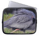 O herão azul-excelente, na fotografia original de MaeFlowers nesta Bolsa de laptop de 10", está enfiando suas penas enquanto caminha em direção a outra éon, um invasor em seu território. A foto é um perfil mais próximo do corpo da ave selvagem, mostrando a longa e fina ascensão de plumagem no topo, e as penas mais largas por baixo. O corpo da erva é uma cor de cinza macia e azulada, com o azul saindo à luz do sol. Há penas pretas na curva da asa, com um toque de castanho avermelhado e branco. O fundo é a grama selvagem na borda da água, com um reflexo ondulado na água.