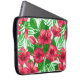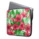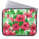 Design de padrão aquoso com flores de hibisco e palmeiras