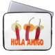 Hola Amigo. Três pimentões quentes, três amigos em sombreros. Texto Hola Amigo. Impressões, presentes e camisas engraçados por diversão e bom humor.