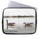 Em um dia de primavera no Alasca, dois gansos canadenses, geralmente chamados de "loucos", natações em um corpo de água ainda parcialmente sufocados com gelo. Esta imagem é de uma fotografia tirada pelo artista. Personalize adicionando seu próprio texto. O ganso do Canadá, Branta canadensis, tem cabeça e pescoço pretos, manchas brancas na face e um corpo de cinza acastanhado. A cabeça e pescoço negros com "chinstrap" branco distinguem o ganso do Canadá de todas as outras espécies de ganso, com exceção do ganso do Barnacle, mas este tem um peito preto, e também cinzas, preferencialmentes que o castanho, plumagem corporal. O Canada Goose tem um comprimento de 30 a 43 polegadas e uma envergadura de 50 a 73 polegadas. Os homens normalmente pesam 7,1- 14 lbs e podem ser muito agressivos na defesa do território. A fêmea parece virtualmente idêntica, mas é levemente mais leve a 5,5 a 12 lb, e tem uma buzina diferente. A esperança de vida na natureza dos gansos que sobrevivem à idade adulta varia de 10 a 24 anos, os gansos do Canadá são nativos da América do Norte. Eles se reproduzem no Canadá e nos Estados Unidos nortes em uma variedade de habitats. Os ninhos encontram-se normalmente numa área elevada perto da água, como riachos, lagos, lagoas e, por vezes, num alojamento de castores. Os ovos são colocados numa depressão superficial revestida de matéria vegetal e caída. Nos últimos anos, as populações canadianas de gansos cresceram substancialmente em algumas áreas, tanto que muitas as consideram pragas por seus excrementos, bactérias em seus excrementos, ruídos e comportamentos de confronto. Este problema deve-se, em parte, à remoção de predadores naturais e a uma abundância de massas de água seguras e criadas pelo homem, como as que se encontram nos campos de golfe, nos parques e praias públicos e nas comunidades planejadas. Devido, em parte, ao cruzamento de várias subespécies migratórias com a subespécie não migratória Giant introduzida, os gansos do Canadá são frequentemente uma característica de ano para ano desses ambientes urbanos. O Canadá e os gansos chegaram naturalmente à Europa norte, como ficou provado por recuperações sonoras. As aves são, pelo menos, da subespécie parvipes, e possivelmente de outras. Os gansos do Canadá também se encontram naturalmente na Península de Kamchatka, na Sibéria Oriental, na China Oriental, e em todo o Japão. Como a maioria dos gansos, o ganso do Canadá é migratório, sendo a faixa de inverno a maioria dos Estados Unidos. Desfilando de grandes grupos canadenses que voam em forma de V sinalizam as transições para primavera e outono. Em algumas áreas, as rotas migratórias mudaram devido a mudanças nos habitats e nas fontes de comida. Em climas suaves da Califórnia até aos lagos Excelentes, parte da população tornou-se não migratória devido ao fornecimento adequado de comidas de inverno e à falta de predadores antigos. Canadá Os gansos são principalmente herbívoros, embora por vezes comam pequenos insetos e peixes. Sua dieta inclui vegetação verde e grãos. O ganso canadense come uma variedade de gramíneas quando em terra. Ele se alimenta segurando uma folha de grama com a conta, e então rasgando com um idiota da cabeça. O ganso canadense também come grãos como trigo, feijão, arroz e milho quando disponíveis. Na água, ele se alimenta de seda no fundo do corpo de água. Também se alimenta de plantas aquáticas, como algas. Em cidades urbanas, eles também são conhecidos por colher comidas de caixas de lixo. Os gansos adultos são frequentemente vistos liderando seus gansos em uma fila, geralmente com um pai na frente, e o outro na parte de trás. Ao protegerem os seus gansos, os pais frequentemente perseguem violentamente criaturas próximas, de pequenas negras a seres humanos solitários que se aproximam, depois de os avisarem, emitindo um som sibilante e atacando com picadas e batas nas asas, se a ameaça não recuar ou se tiver tomado um guloso. A maior parte das espécies que presas em ovos também vai fazer fofocas. Embora os pais sejam hostis aos gansos desconhecidos, podem formar grupos de vários gansos e alguns adultos, chamados creches.