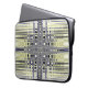 Arte fractal abstrato simétrica que me lembra ilusões óticas. Esta legal bolsa de laptop neoprena apresenta círculos e ondas em branco, azul e caqui.