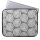 Bolsa de laptop em um padrão de impressão de bloco, baseado em uma concha espiral, em branco em uma cinza de grafite profunda / fundo de cinza