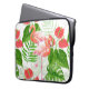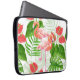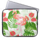 Design de padrão aquoso com flores e aves flamingos, monstera e palmeiras.