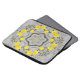 A mesmerizing kaleidoscopic design crafted from vivid yellow flowers and green stems, arranged in a symmetrical, star-like mandala. The grayscale sandy background with sparse grass enhances the vibrant floral pattern, creating a striking contrast between nature’s raw texture and geometric precision. Ideal for art lovers who appreciate the fusion of organic beauty and digital symmetry, this piece brings warmth, balance, and visual intrigue to any space.
