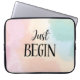 A gentle nudge to start where you are—this “Just Begin” quote design is set against a dreamy pastel watercolor background.