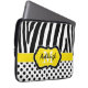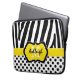 Esta bolsa de laptop de 13" personalizada, amarela, preta e branca, em forma de chic e moda, tem caixas de texto para você adicionar seu nome e monograma. ****Envie-me um e-mail se você quiser um tamanho maior, pois selecioná-lo sozinho fará com que as caixas de design e texto escorreguem. Se precisar de ajuda para personalizar isto com as suas próprias informações, envie um e-mail para niteowlstudio@gmail.com para obter ajuda.