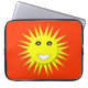 Esta bolsa de laptop incrível apresenta um sol amarelo brilhante e sorridente que é garantido para fazer você sorrir mesmo nos dias mais miseráveis. Está sobre fundo quente e tem uma boca sorridente branca grande e olhos pretos enormes com pupilas brancas.