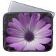 Esta bolsa de laptop incrível apresenta uma fotografia lindamente detalhada de uma flor margarida africana. A foto foi alterada digitalmente, resultando em uma bonito flor púrpura com diferentes tons de púrpura nas pétalas e um centro roxo escuro.
