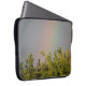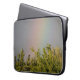 Esta bolsa de laptop incrível mostra uma bela foto paisagística de um arco-íris sobre o topo de algumas árvores. A fotografia foi tirada logo após uma tempestade para capturar as cores vivas do arco-íris. O céu ao redor é cinza com cobrir de nuvem.