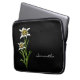 Mala de laptop perfurada elegante feita a preto, com gráficos adoráveis da flor branca alpina Edelweiss. O texto personalizado de script branco está pronto para personalizar você mesmo ou como uma ideia de presente de excelente.