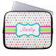 Pontos coloridos doces dão a esta bolsa de laptop estilo retrô. Personalize este saco de laptop alterando o nome de acordo com as suas necessidades. Esta bolsa de laptop é excelente para mulheres, moças, adolescentes, professoras, escolas, trabalho, faculdade, etc... A design é de arte original.