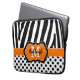 Esta bolsa de laptop e listras de zebra brancas, laranja, preto e laranja personalizadas, de 13", tem caixas de texto para você adicionar seu nome e monograma. ****Envie-me um e-mail se você quiser um tamanho maior, pois selecioná-lo sozinho fará com que as caixas de design e texto escorreguem. Se precisar de ajuda para personalizar isto com as suas próprias informações, envie um e-mail para niteowlstudio@gmail.com para obter ajuda.