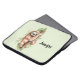 Bolsa de laptop com uma design de aquarela fofinha, com preguiça aguda pendurada num galho arbóreo rodeado por folhas tropicais verdes. Fundo verde-oliva claro.
