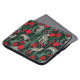 Um padrão tropical exótico e único que apresenta leopardos na selva com palmas e folhagem e rosas vermelhas sobre um fundo preto contrastante. As cores ricas e vibrantes de vermelho, preto, verde e bege fazem com que este design seja pop com estilo. Uma moldura em forma de diamante envolve um monograma que pode ser personalizado com a sua inicial desejada.