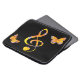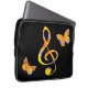 Um design contemporâneo com a nota de música do pinto tremor de água e duas borboletas flutuando para longe
