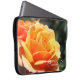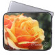 Mala linda de laptop de rosa amarela com nome. fotografia floral e botânica.