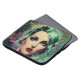 Veja este belo retrato elegante de uma mulher espacial com o universo como pano de fundo e um lindo halo verde em volta de sua cabeça adornada com flores lavandas com um olhar de lavagem com aquarela retrô. Faz um presente perfeito!