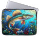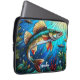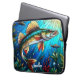 Este design moderno divertido tem um pique colorido de walleye nadando em um belo lago azul num dia ensolarado.