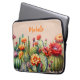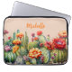 Essa bela bolsa de laptop de cactos é perfeita para quem ama cactos ou plantas em geral. O design apresenta uma variedade de cactos floridos em fundo de pêssego empoeirado em estilo aquarela. O nome na manga é personalizável e daria um presente personalizado maravilhoso.