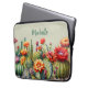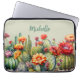 Essa bela bolsa de laptop de cactos é perfeita para quem ama cactos ou plantas em geral. O design apresenta uma variedade de cactos floridos em um fundo khaki leve no estilo de aquarela. O nome na manga é personalizável e daria um presente personalizado maravilhoso.