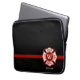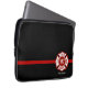 Uma linha vermelha grande caixa temático do laptop do salvamento do fogo. Caracteriza uma cruz maltesa no centro para seu monograma do seu primeiro ou sobrenome ou aquele de seu receptor do presente. Debaixo da cruz maltesa é um ponto para o nome ou o sobrenome da pessoa. Um presente personalizado impressionante para esse sapador-bombeiro favorito em sua vida.