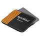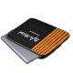 Adicione seus detalhes sobre esta faixa laranja no design de fundo preto para sua empresa.