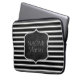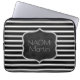 A luva monogrammed do computador das listras lustrosa, preto e branco para suas listras preto e branco clássicas modela o fundo. O quadro na moda do quadro do falso com brilho de prata afia o nome monogrammed dos quadros em combinar a rotulação elegante das cinzas de prata. Nota: Todas as imagens são imprimidas. Brilho nao real ou quadro. A bolsa de laptop chique para mulheres sofisticadas. Apronte para personalizar. Nós temos este design do quadro do vintage no outro na moda, presentes da tecnologia. Personalize-o contudo que o desejo adiciona a mensagem personalizada. Apenas o clique personaliza a opção. Visite nossa loja em linha de angela65 Zazzle para lotes do outro chique, as bolsas de laptop modernas. Seja presente bonito, personalizado da graduação para ela.