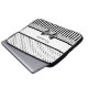 Um teste padrão preto e branco do estilo feminino do Victorian a bolsa de laptop de 15 polegadas com as bolinhas chiques na parte superior, listras à moda na parte inferior. Personalize este grupo elegante adicionando seu nome ao divisor do laço do ilhó embellished com uma fita preta na moda amarrada em um arco. Imagem impressa do plano, laço nao real.