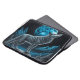 Arte de fantasia azul e negra representando um lobo solitário parado em uma montanha em frente a uma lua de cheio. Ai gerou arte.