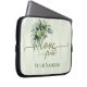 Bolsa de laptop com um elegante design verde listrado com folhas de aquarela e textos de script. Bonita, por exemplo, mãe, professor, empregador ou irmã...