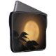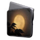 É outono, e uma Lua cheia amarela dourada luminosa aumentou atrás das silhuetas pretas das folhas que fundem na brisa nesta bolsa de laptop dramática da fotografia das belas artes. O fundo é iluminado nos tons da laranja, do ouro e do marrom para criar um teste padrão abstrato em um motivo asiático.