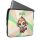 Macaco laranja bonito segurando uma boba ou chá de bolha. Bolsa de laptop personalizada.