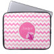 laptop de 15 pol de na moda feito em um padrão chevron cor-de-rosa e branco zigzag. Os gráficos de um disco redondo, rosa e branco, no centro do gabinete, têm uma joaninha rosa e um texto personalizado de script branco. Personalize o texto para si mesmo ou como uma bela ideia de presente para qualquer garota etária.