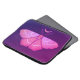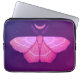 Bolsa de laptop de mariposa em roxo e rosa com padrão mágico de bruxaria amarela na noite com meia lua e estrelas sobre fundo roxo escuro.