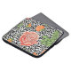 Impressão de leopardo preto e branco com um design floral rosa cor de laranja.
