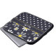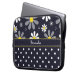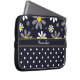 Uma bolsa de laptop 10 polegadas com um teste padrão de flor retro feminino da modificação na parte superior com as margaridas brancas com centros amarelos contra um fundo dos azuis marinhos, e um teste padrão de bolinhas azul e branco na moda na parte inferior. Personalize adicionando seu nome. Aperfeiçoe o presente para uma menina feminino à moda.