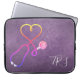 Plano de fundo brilhante roxo, acentuado por um estetoscópio em forma de coração. Enfermeiras, médicos e profissionais da indústria médica vão adorar esta manga de computador. Monograma com iniciais ou título.