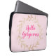 Bolsa de laptop de coroa rosa-rosa, cinzenta e bonito, com as palavras "Hello Gorgeous" em um elegante roteiro rosa-quente.