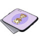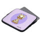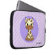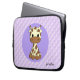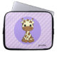 Esta bolsa de laptop mostra uns desenhos animados do girafa do bebê com olhos roxos grandes em um fundo roxo geométrico. O girafa é tão bonito satisfará crianças, mas certamente igualmente seus mães ou pais.
