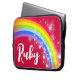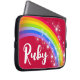 Perfeito para proteger e achar seu dispositivo fácil em cores vermelhas e arco-íris. Personalize com seu próprio nome lê atualmente Ruby. Este caso gráfico original do arco-íris e estrelas foi projetado por Sarah Trett para www.mylittleeden.com