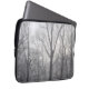 Fotografia atmosférica tirada ao amanhecer numa madeira nebulosa.