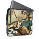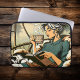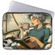 Capa Para Notebook Moça Louca Lendo com Café e Gato