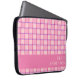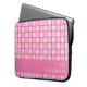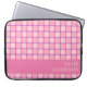 A modern checker laptop sleeve in chic pink and purple, with a pink color block along the bottom to customize with your name, or add a loved one’s name and make it a personalized gift. Tuck your laptop inside and carry it with style to class, office or your favorite cafe. The protective build and stylish cover make it both practical and pretty. Thanks for viewing an Eria Daisy Art design!