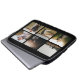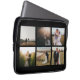 Bolsa de laptop moderna com um design preto simples e mínimo com uma colagem fotográfica de seis das suas fotografias de casamento favoritas. Esta bolsa de laptop elegante é perfeita para uma noiva recém-casada.