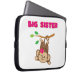 Uma macaca bonita com uma flor rosa balançando na cauda de um galho e um texto cor-de-rosa lê "Big Sister" em T-shirts irmãs grandes, correntes chave, cartões, autocolantes, sacos de tote, ímãs, mousépads, travesseiros e outras irmãs grandes e presentes!
