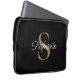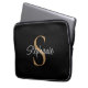 This personalized laptop sleeve features elegant script typography and a gold monogram. It is easily customizable.