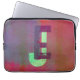 Monogram Initials Grunge Funky Purple Green Art Laptop Sleeve. Dopamine decor in playful colors. Change the initials to your own. Give as a gift to family, to make their laptop case unique.